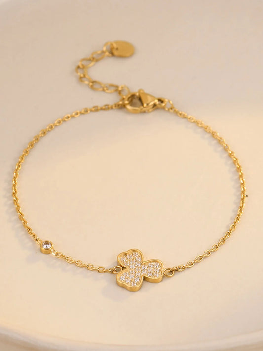 18K Gold-Plated Rhinestone Heart Charm Bracelet