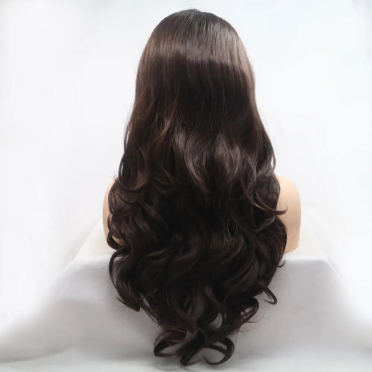 13*2" Lace Front Wigs Synthetic Long Wave 26" Heat Safe 150% Density in Brown