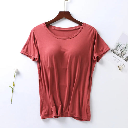 Plus Size Round Neck Short Sleeve T-Shirt with Bra