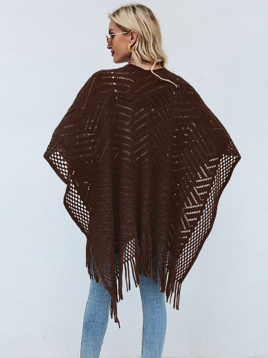 Shiny Heathered Fringe Detail Poncho