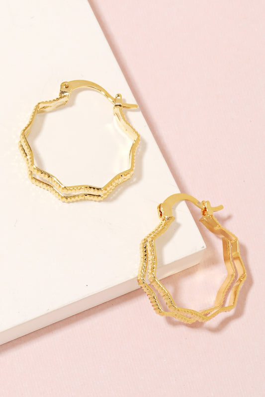 Fame Double Wavy Pincatch Hoop Earrings