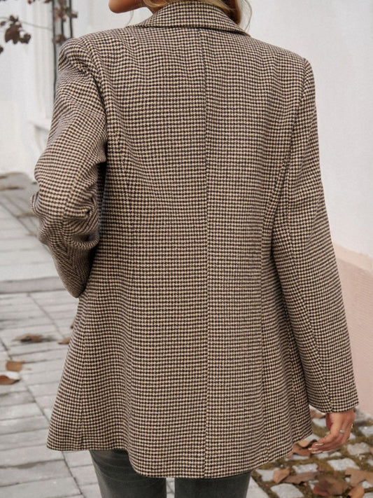 Devine Pocketed Houndstooth Long Sleeve Blazer