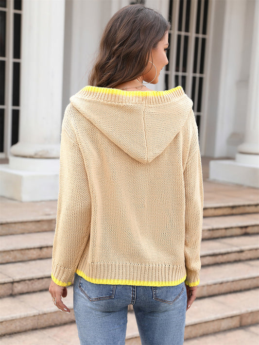 Cable-Knit Dropped Shoulder Hooded Sweater