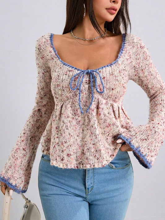 -24% OFFTie Front Flare Sleeve Sweater