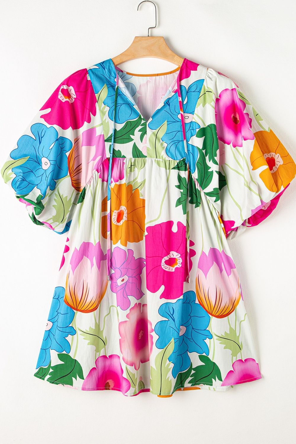 Halloween Checkerboard Floral Ghost Graphic Corded Sweatshirt