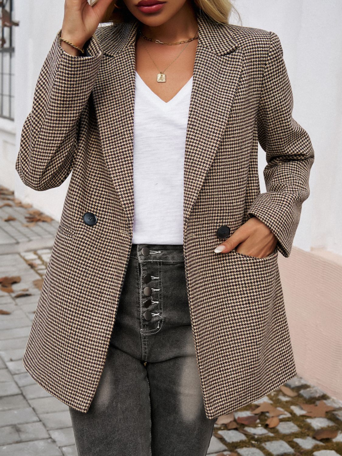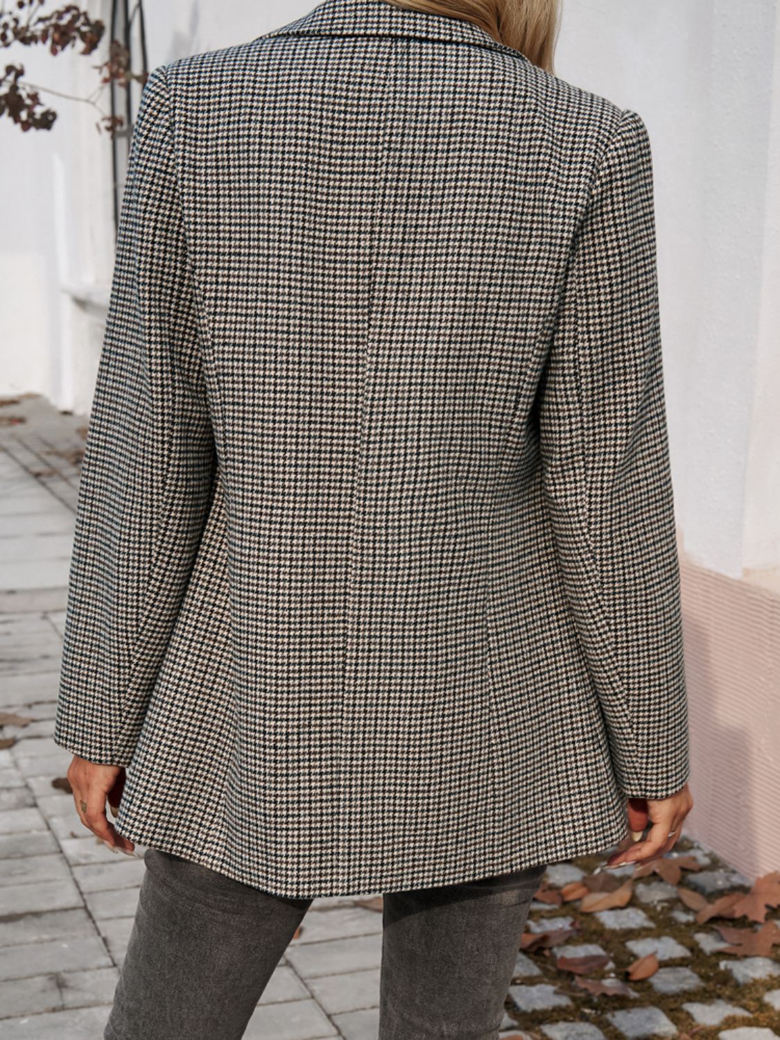 Devine Pocketed Houndstooth Long Sleeve Blazer