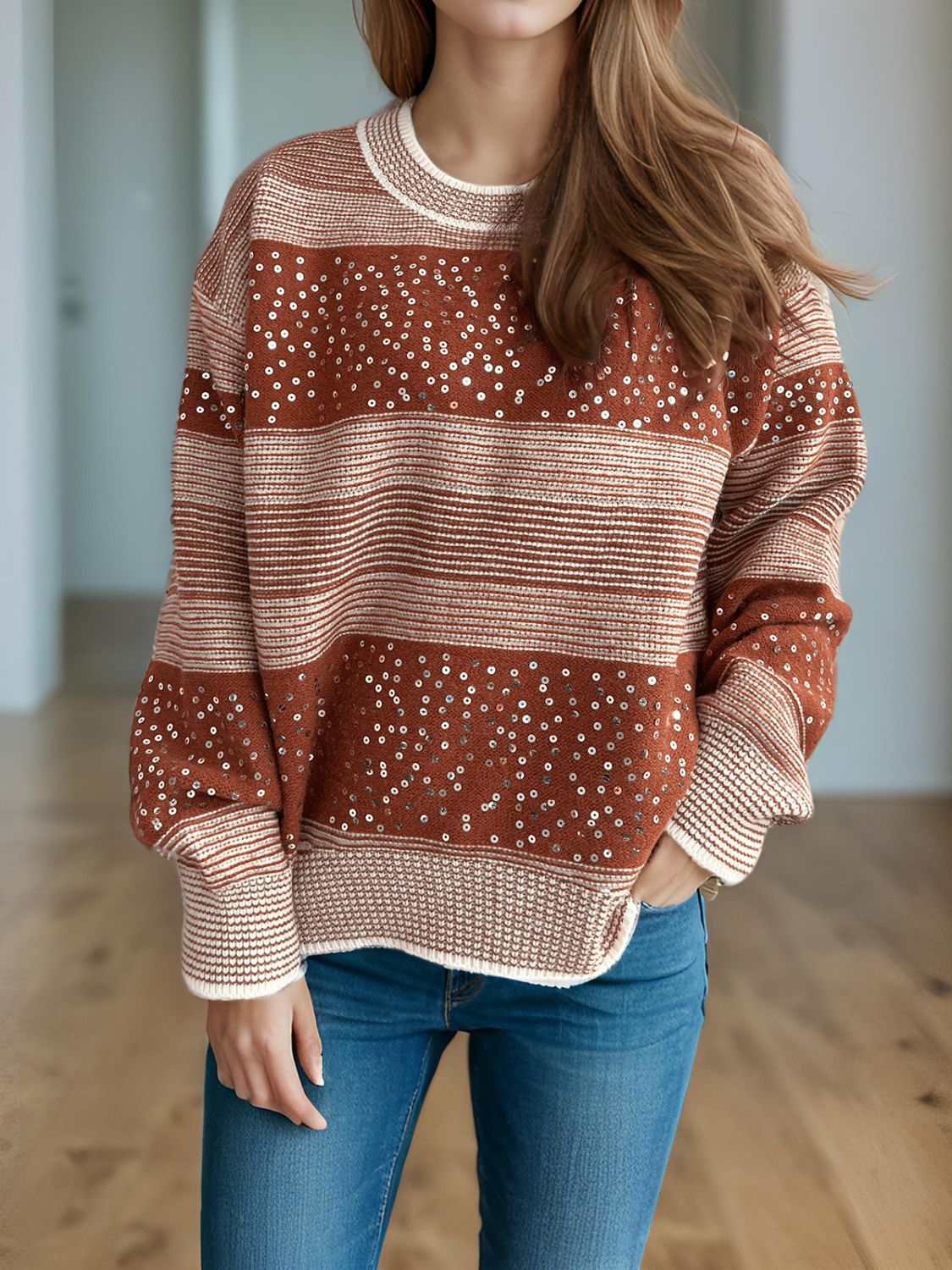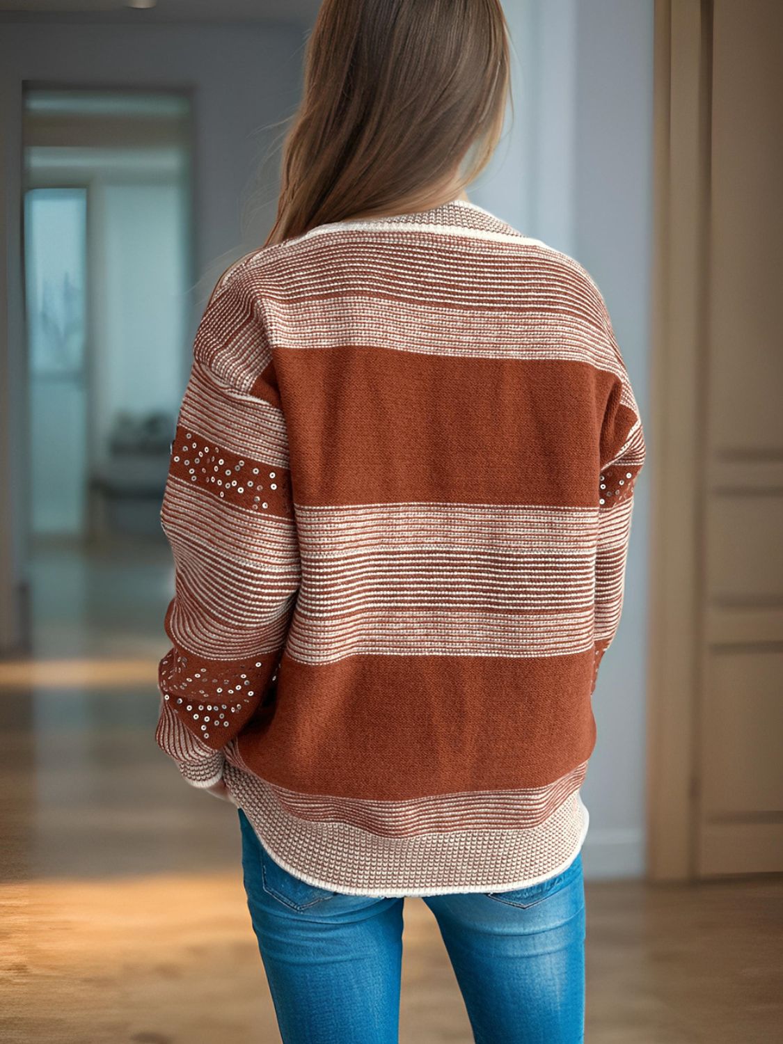 Lovelet Striped Contrast Long Sleeve Sweatshirt